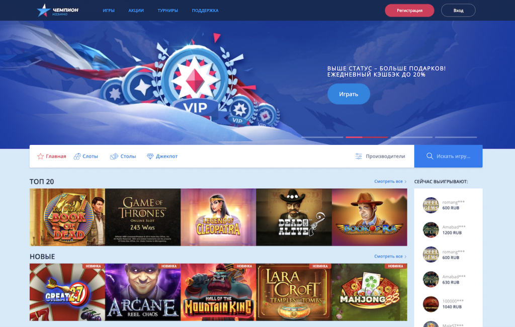 Онлайн казино Чемпион ( casino champion официальный ) сайт открылся в 2018 году и тут же влетел в рейтинг лучших интернет казино, поэтому активируй сейчас уникальный бонус. В азартном клубе в основном играют жители России и СНГ, из за чего весь интерфейс представлен на русском языке. Это значит, что играть на деньги и делать ставки можно в рублях. Казино Чемпион работает по лицензии Кюрасао. Кстати на сайте более 3000 игр от 15 популярных разработчиков. А для новичков разработан супер приветственный бонус — 200 000 рублей на первые 5 депозитов. Прочитайте статью до конца, чтобы узнать всю полезную информацию!