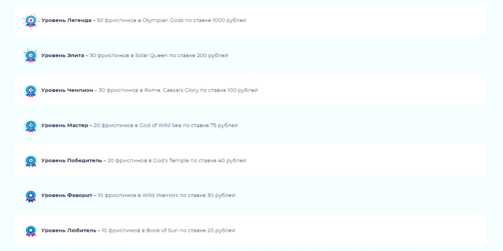 Как уже говорили ранее, размер возврата зависит от уровня игрока: чем он выше, тем больше возврат и круче бонусы. Например, новые игроки получают 3% кэшбэка, а чемпионам уровня Легенда доступны максимальные 20% возврата от проигранных средств.